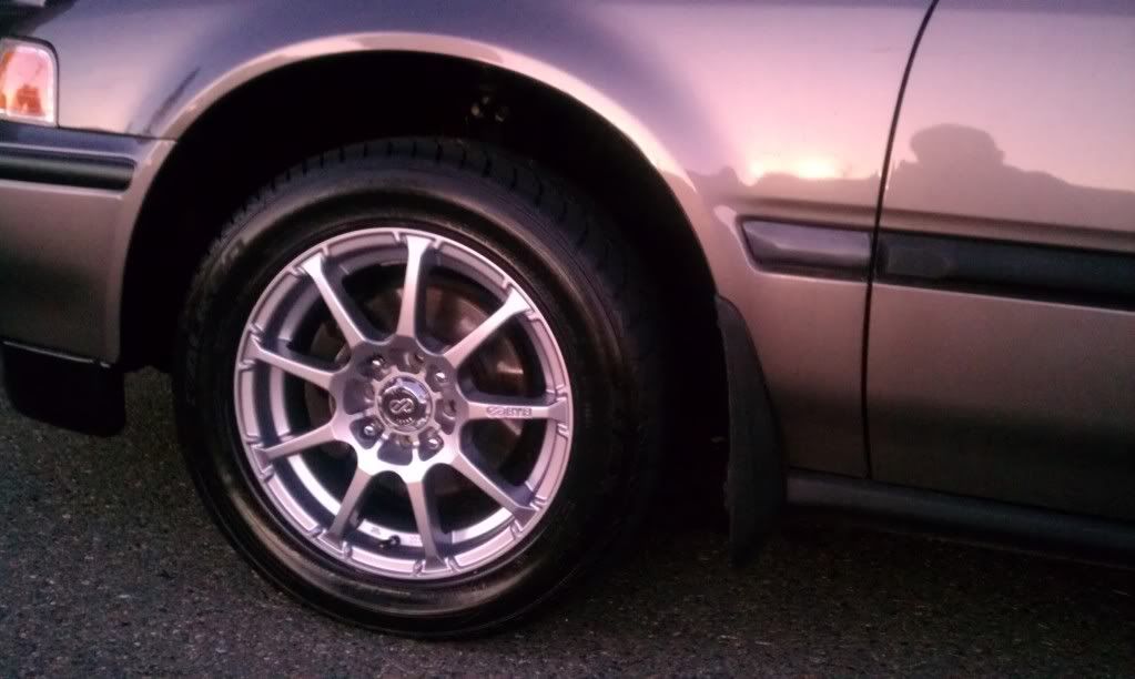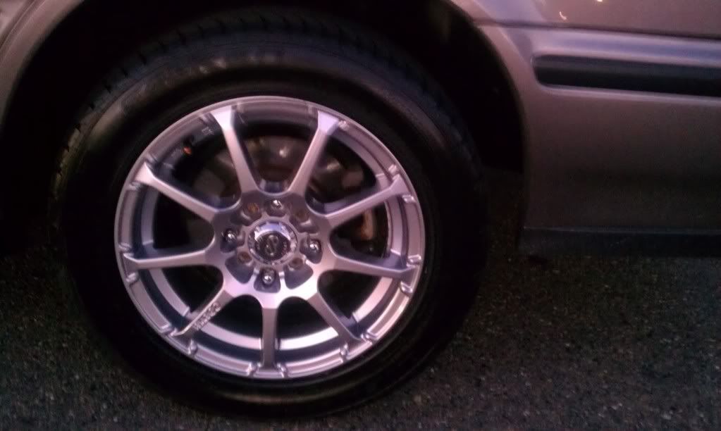 new wheels, look at that gap though. need some lowering springs soon. Enkei EDR9 15" X 6.5" 38 offset, wraped in falken Ziex sumthin sumthin sumthin tires.